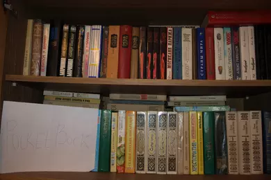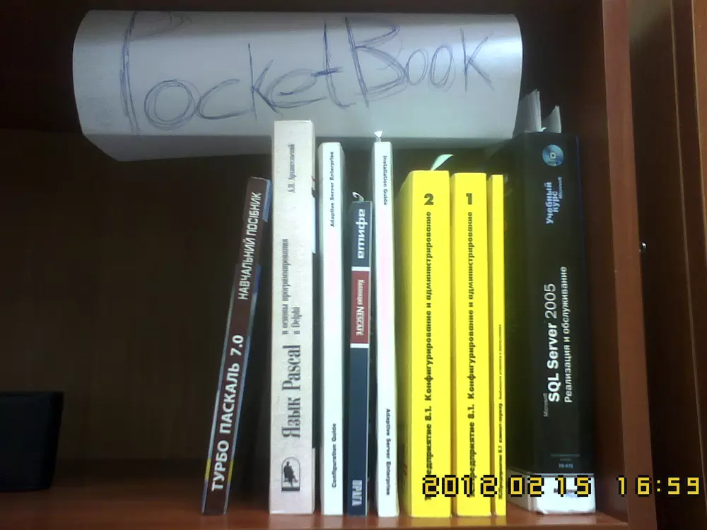 Для участия в конкурсе нужно загрузить фотографию собственной библиотеки в формате JPG. Чтобы обеспечить равные условия для всех участников и избежать мошенничества, на снимке должен быть помимо книг лист бумаги с написанным на нем словом "PocketBook". Нет, вставить текст в фотошопе — это не то же самое. Пример снимка есть на фото ниже. Администрация сайта оставляет за собой право отклонять поданные на конкурс работы без вступления в длительную переписку с объяснением причин. Конкурс проходит с 13 по 26 февраля (включительно). Призовой фонд составляет три Android-ридера PocketBook A7. Победители будут выбраны в результате жеребьевки (случайным образом). Результаты будут опубликованы на сайте не позднее 1 марта. От одного участника принимается только одна работа. К участию в конкурсе, традиционно, допускаются только жители Украины и не допускаются те, кто так или иначе связан с нашим сайтом и компанией Magnet.