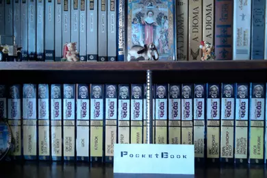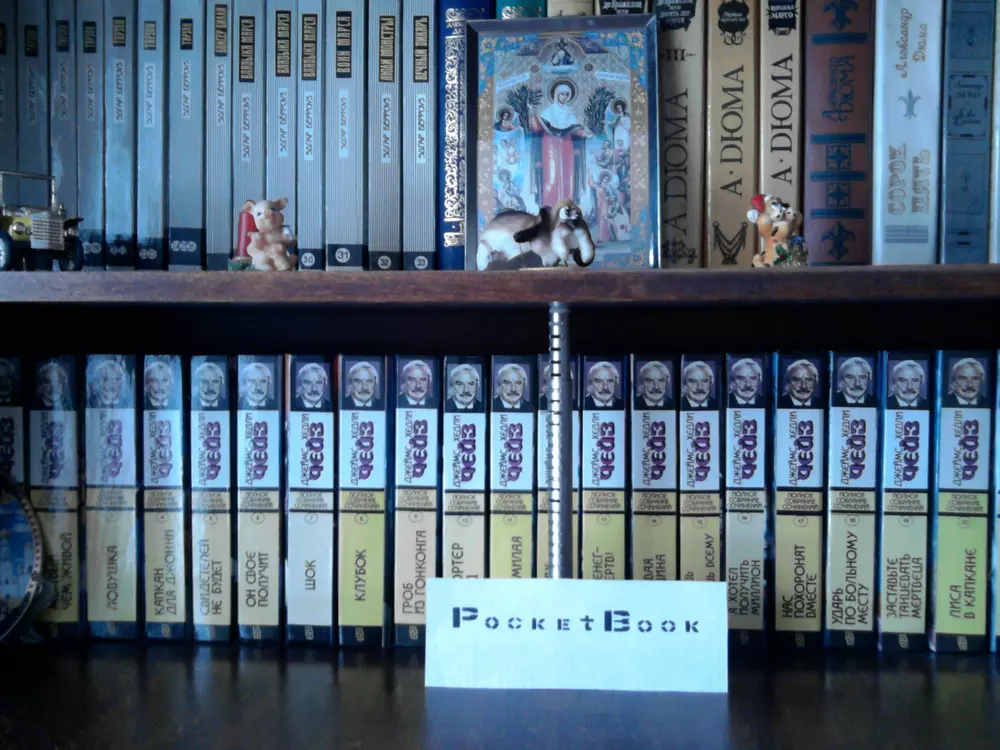 Для участия в конкурсе нужно загрузить фотографию собственной библиотеки в формате JPG. Чтобы обеспечить равные условия для всех участников и избежать мошенничества, на снимке должен быть помимо книг лист бумаги с написанным на нем словом "PocketBook". Нет, вставить текст в фотошопе — это не то же самое. Пример снимка есть на фото ниже. Администрация сайта оставляет за собой право отклонять поданные на конкурс работы без вступления в длительную переписку с объяснением причин. Конкурс проходит с 13 по 26 февраля (включительно). Призовой фонд составляет три Android-ридера PocketBook A7. Победители будут выбраны в результате жеребьевки (случайным образом). Результаты будут опубликованы на сайте не позднее 1 марта. От одного участника принимается только одна работа. К участию в конкурсе, традиционно, допускаются только жители Украины и не допускаются те, кто так или иначе связан с нашим сайтом и компанией Magnet.