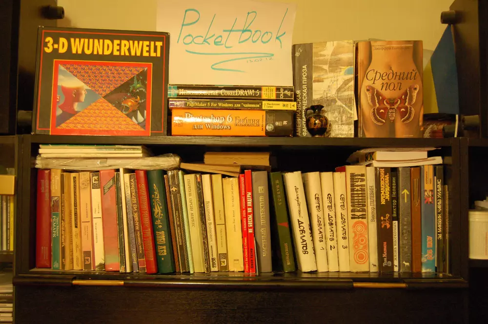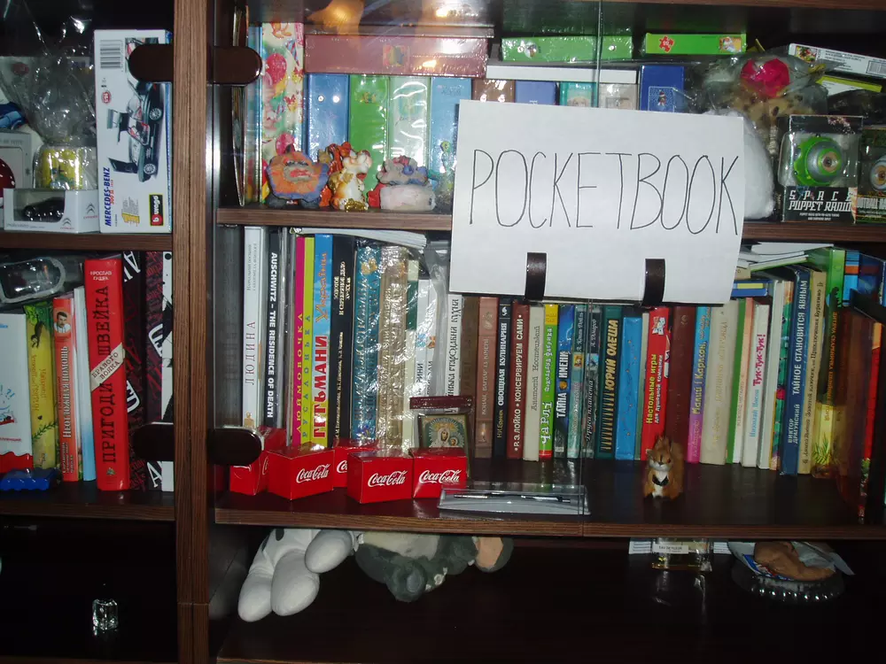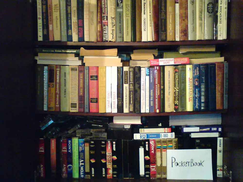 Книги,VHS,аудиокассе?ты - все они лежат в одном месте (в два ряда)! Полки, от всего этого добра, прогибаются (ДСП как-никак). Ридер от PocketBook решает проблему экономии свободного пространства(от вышеперечисленного) и обеспечивает мобильность в передвижении!