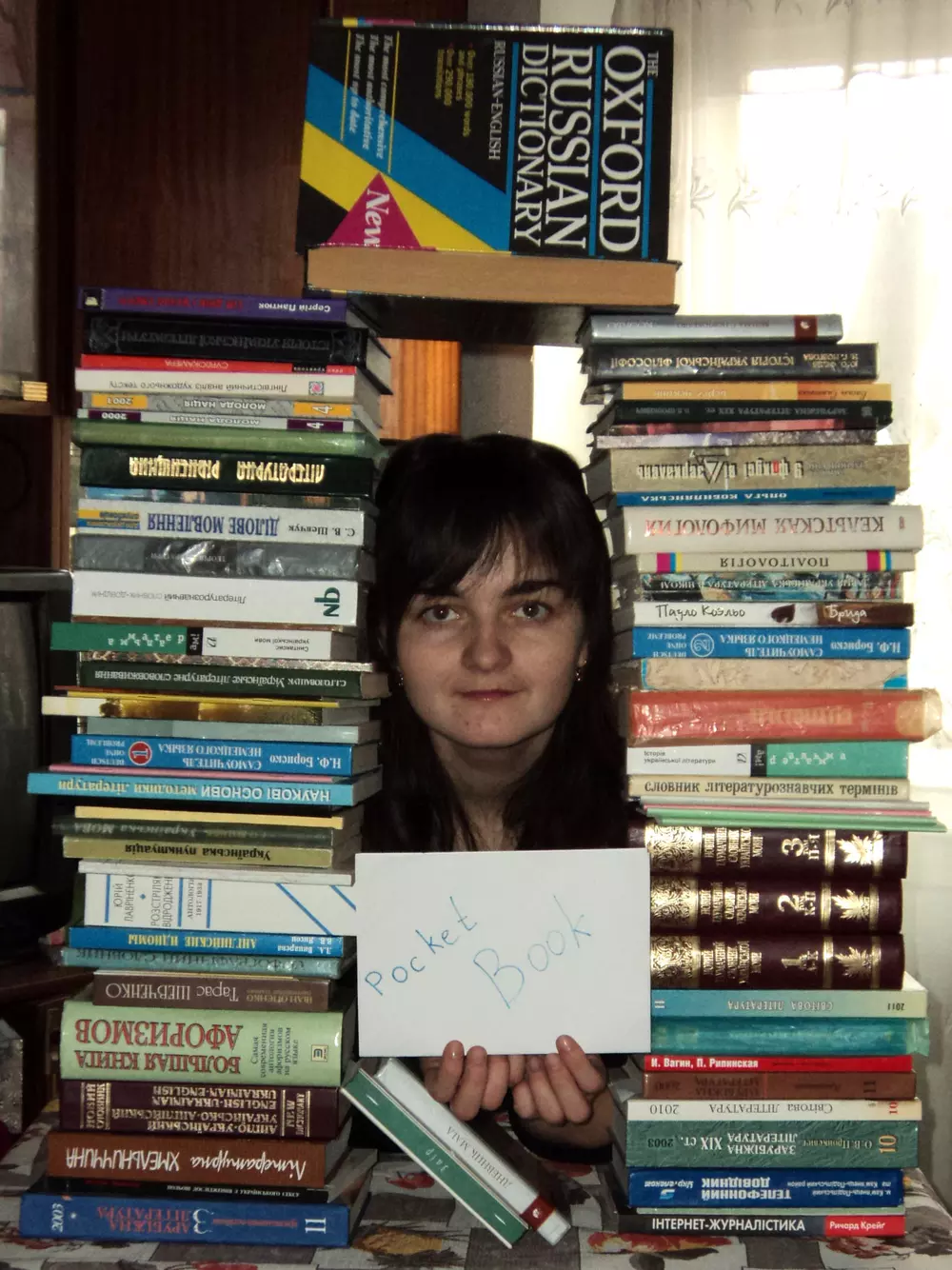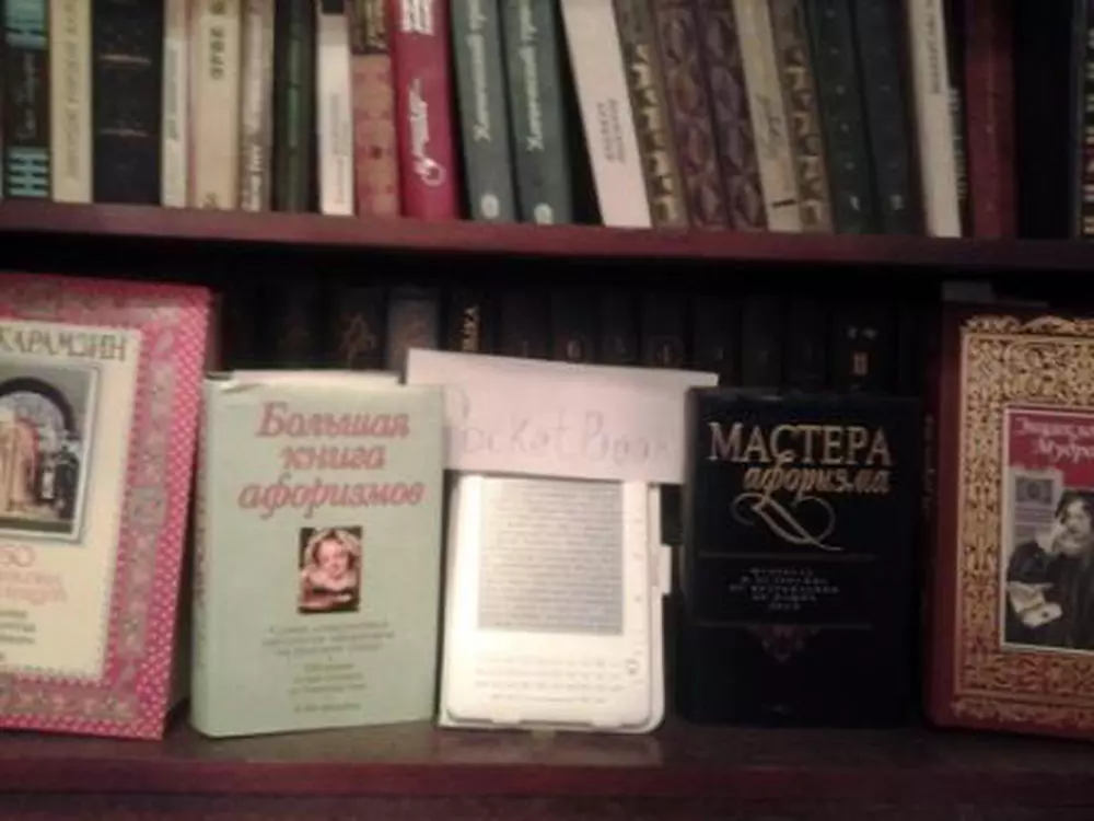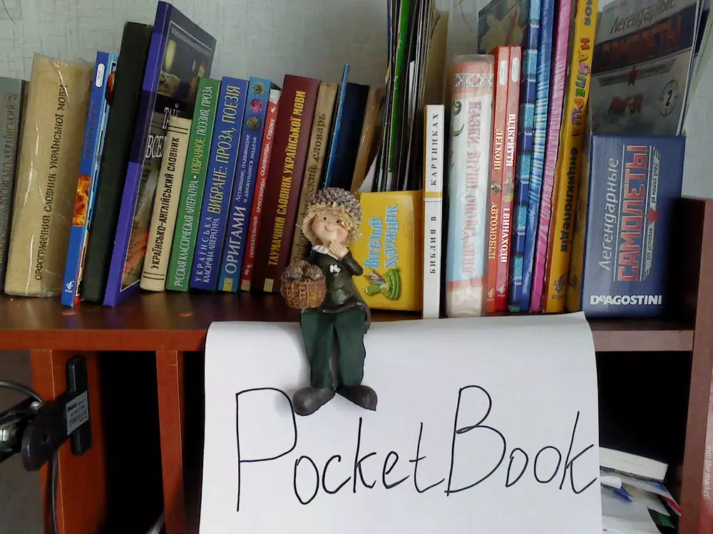 Для участия в конкурсе нужно загрузить фотографию собственной библиотеки в формате JPG. Чтобы обеспечить равные условия для всех участников и избежать мошенничества, на снимке должен быть помимо книг лист бумаги с написанным на нем словом "PocketBook". Нет, вставить текст в фотошопе — это не то же самое. Пример снимка есть на фото ниже. Администрация сайта оставляет за собой право отклонять поданные на конкурс работы без вступления в длительную переписку с объяснением причин. Конкурс проходит с 13 по 26 февраля (включительно). Призовой фонд составляет три Android-ридера PocketBook A7. Победители будут выбраны в результате жеребьевки (случайным образом). Результаты будут опубликованы на сайте не позднее 1 марта. От одного участника принимается только одна работа. К участию в конкурсе, традиционно, допускаются только жители Украины и не допускаются те, кто так или иначе связан с нашим сайтом и компанией Magnet.