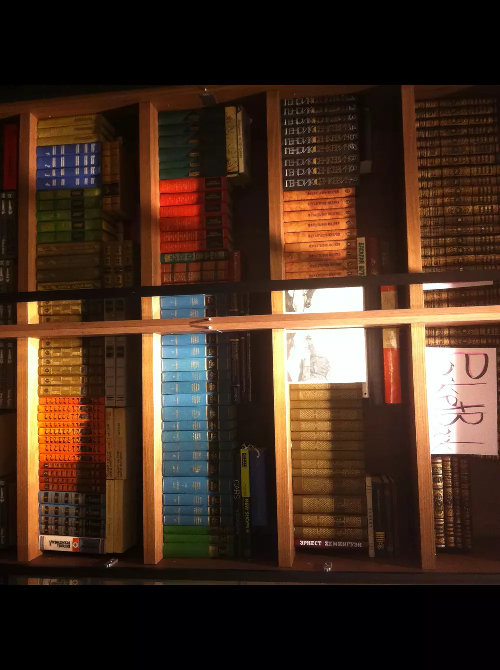 Вся библиотека не влезет, только пару книг может запчатлить мой слабенький телефон.