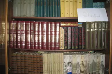 Несколько полок из детского книжного шкафа. Папина детская библиотека перешла к сыну. Но, всего не уместить. PocketBook может исправить этот недостаток. Если повезет!