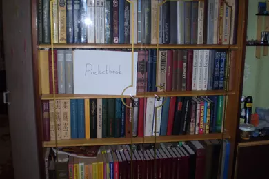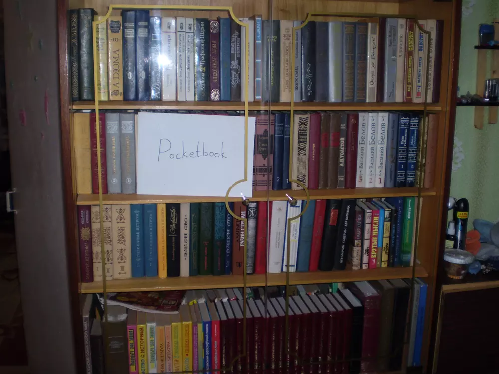 Для участия в конкурсе нужно загрузить фотографию собственной библиотеки в формате JPG. Чтобы обеспечить равные условия для всех участников и избежать мошенничества, на снимке должен быть помимо книг лист бумаги с написанным на нем словом "PocketBook". Нет, вставить текст в фотошопе — это не то же самое. Пример снимка есть на фото ниже. Администрация сайта оставляет за собой право отклонять поданные на конкурс работы без вступления в длительную переписку с объяснением причин. Конкурс проходит с 13 по 26 февраля (включительно). Призовой фонд составляет три Android-ридера PocketBook A7. Победители будут выбраны в результате жеребьевки (случайным образом). Результаты будут опубликованы на сайте не позднее 1 марта. От одного участника принимается только одна работа. К участию в конкурсе, традиционно, допускаются только жители Украины и не допускаются те, кто так или иначе связан с нашим сайтом и компанией Magnet.