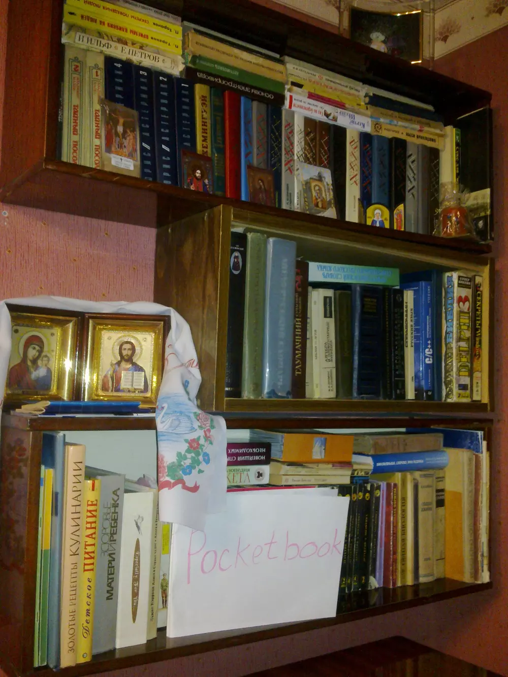 Большую часть книг пришлось выкинуть либо раздать, занимают много места :( А читать люблю. Вот бы PocketBook пригодился.