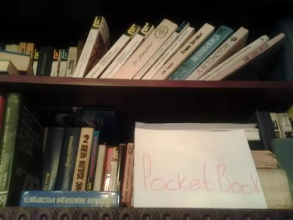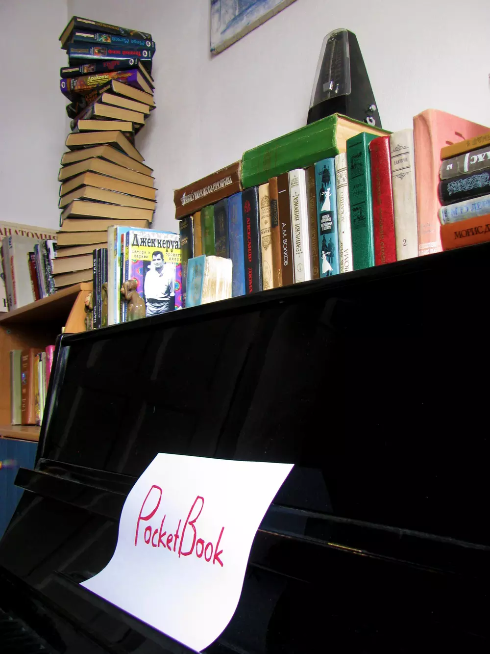 Для участия в конкурсе нужно загрузить фотографию собственной библиотеки в формате JPG. Чтобы обеспечить равные условия для всех участников и избежать мошенничества, на снимке должен быть помимо книг лист бумаги с написанным на нем словом "PocketBook". Нет, вставить текст в фотошопе — это не то же самое. Пример снимка есть на фото ниже. Администрация сайта оставляет за собой право отклонять поданные на конкурс работы без вступления в длительную переписку с объяснением причин. Конкурс проходит с 13 по 26 февраля (включительно). Призовой фонд составляет три Android-ридера PocketBook A7. Победители будут выбраны в результате жеребьевки (случайным образом). Результаты будут опубликованы на сайте не позднее 1 марта. От одного участника принимается только одна работа. К участию в конкурсе, традиционно, допускаются только жители Украины и не допускаются те, кто так или иначе связан с нашим сайтом и компанией Magnet.