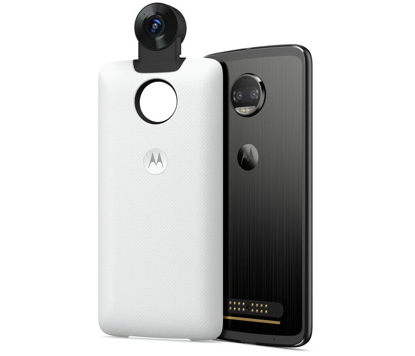 Модуль 360 Camera Moto Mod оснащен двумя 150-градусными широкоугольными камерами с поддержкой съемки панорамного 4K-видео с пространственным звуком. Редактировать ролики можно прямо на смартфоне. Смартфоны Motorola Z-серии совместимы со всеми известными модулями Moto Mods. 360-градусная камера обойдется в $300.