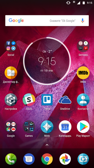 Moto Z2 Force работает на практически чистом Android 7.1.1 Nougat, вскоре обещают обновление до Oreo (по слухам, версия для Verizon уже начала обновляться). Мы уже неоднократно рассматривали ПО и детально останавливаться на нём не будем (можно почитать, к примеру, в обзоре Moto Z2 Play). Перед нами чистый Android с минимумом доработок и дополнительных приложений: