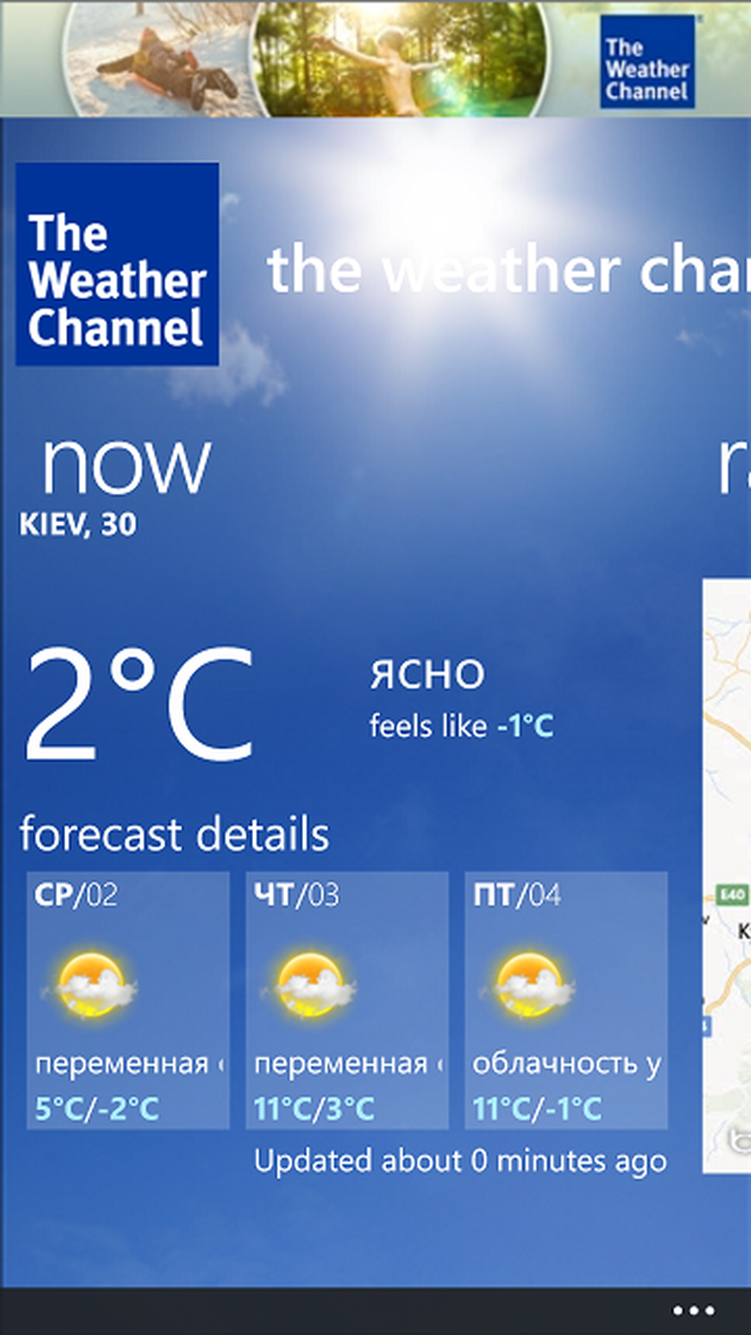 Что можно сказать в конце о The Weather Channel? Это приложение было бы почти идеальным спутником для фаната детальной информации о погоде. Почему "почти", спросите вы? На это есть 2 причины. Первая - это только частичная локализация приложения, а вторая - ряд неработающих у нас сервисов. В остальном же это хорошо работающее и красиво выглядящее приложение для тех, кто хочет знать о погоде почти всё. Сам The Weather Channel доступен в Windows Phone Marketplace.