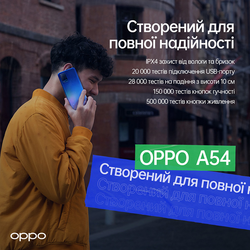 OPPO A54 приехал в Украину: IPS-дисплей, чип MediaTek Helio P35, защита IPX4, NFC и батарея на 5000 мАч за 4999 грн