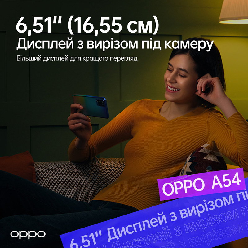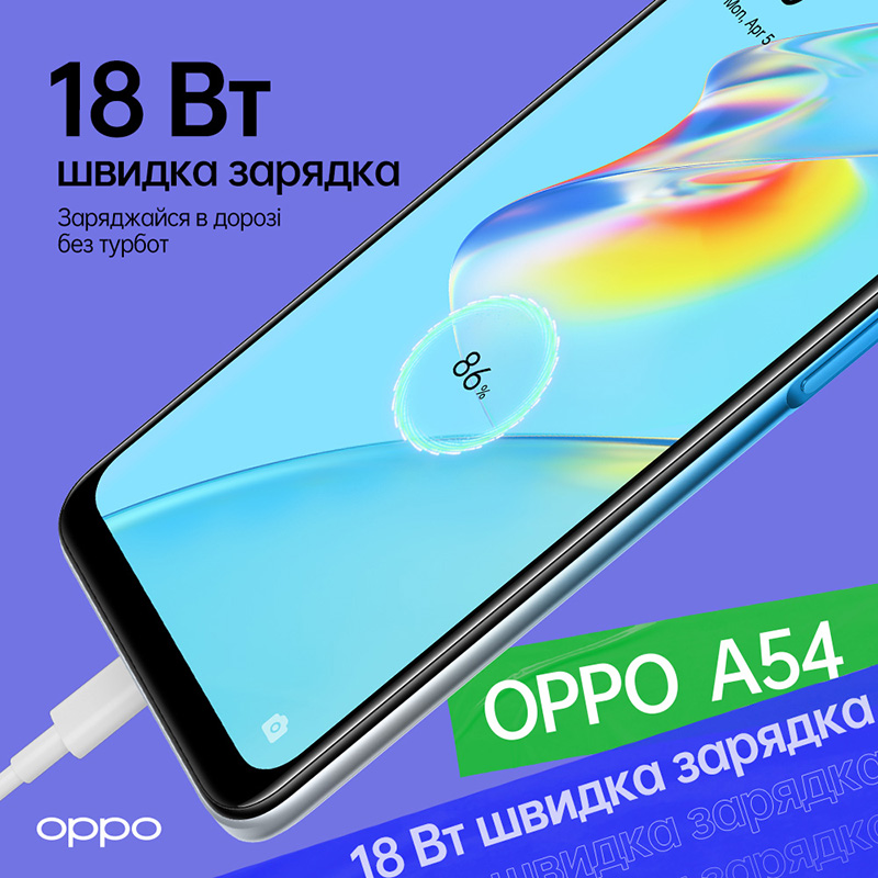 OPPO A54 приехал в Украину: IPS-дисплей, чип MediaTek Helio P35, защита IPX4, NFC и батарея на 5000 мАч за 4999 грн
