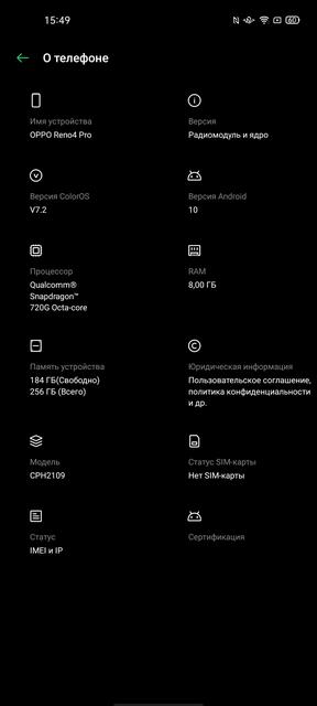 | Технические характеристики OPPO Reno4 Pro | |