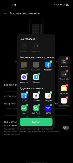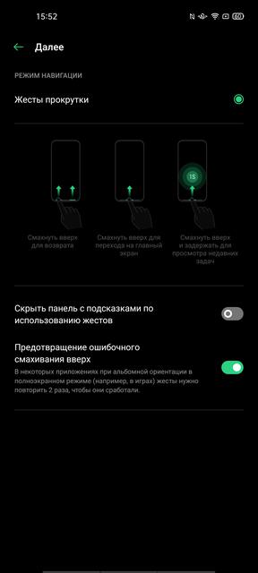 Для навигации по системе предусмотрено несколько вариантов: полноэкранные жесты, жесты от нижнего края экрана и традиционные кнопки. Также есть поддержка дополнительных жестов для запуска приложений и управления мультимедийными функциями. И боковая "смарт-панель" для запуска самых используемых приложений.