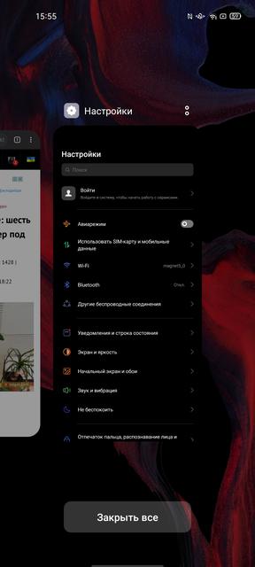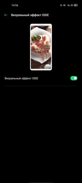 В настройках экрана есть два цветовых режима экрана: "яркие цвета" (с типичным для AMOLED расширенным цветовым охватом) и "Нежность" (sRGB), плюс есть отдельный ползунок настройки цветовой температуры. Помимо этого есть весь необходимый современный набор настроек: масштаб элементов интерфейса, размер шрифта, тёмная тема интерфейса, защита глаз (фильтр синего), эффект OSIE (улучшалка на основе нейросететей), функция уменьшения мерцания и выбор частоты обновления. Есть фиксированные режимы 90 и 60 Гц, а также автоматический.