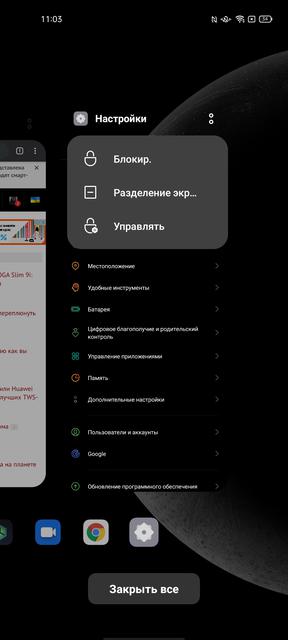 Диспетчер приложений стандартный: с возможностью закрепления отдельных и переходом в двухоконный режим:
