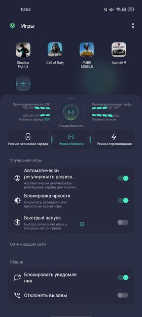Игровое приложение OPPO присутствует, как и в прошлых смартфонах. Функциональность приблизительно соответствует другим подобным решениям: блокировка уведомлений и вызовов, выбор уровня производительности, блокировка уровня яркости дисплея.