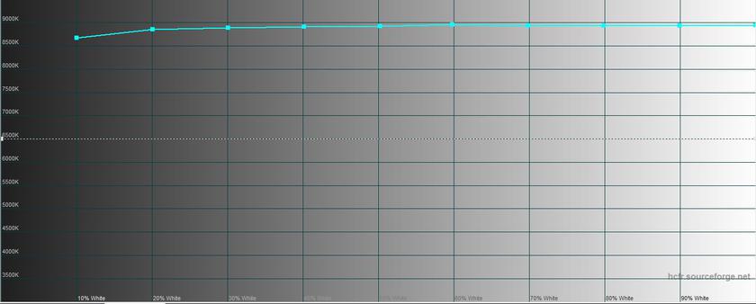 По результатам замеров, максимальная яркость в ручном режиме составила 428.868 кд/м², что соответствует заявленному значению. Цветовой охват при этом существенно шире sRGB, а картинка немного уходит в холодные оттенки из-за переизбытка синей составляющей.