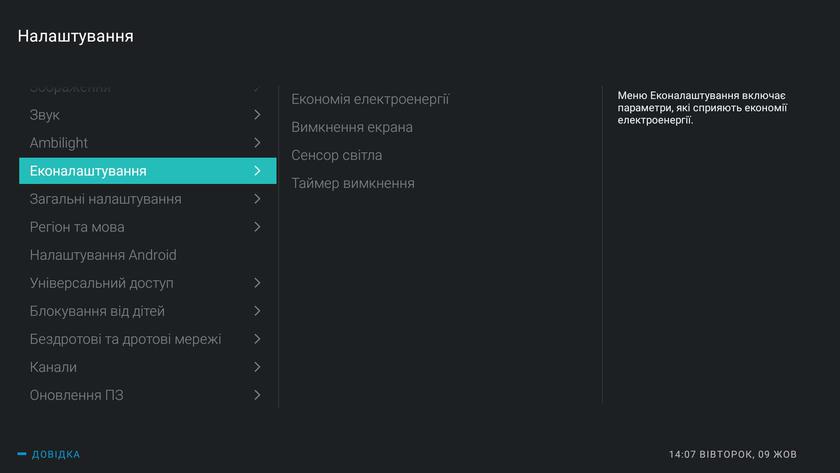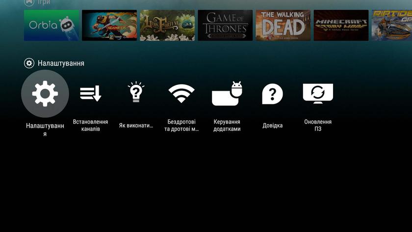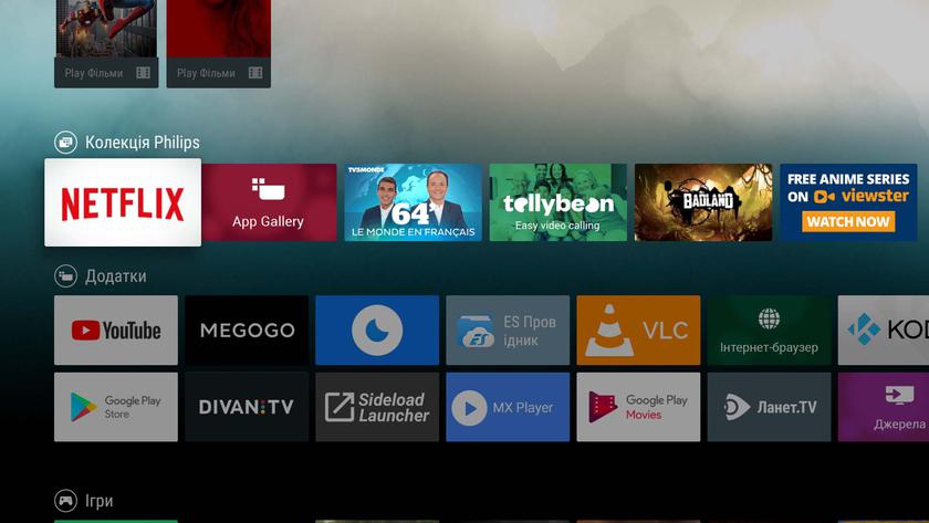 Основным достоинством и преимуществом Android TV по сравнению с другими Smart TV платформами является гибкость в настройке и огромное количество сторонних приложений. Интерфейс Android TV оптимизирован под большой экран и управление с помощью пульта. Весь контент на основном экране сделан в виде плиток и разделён на логические блоки: рекомендованные материалы, рекомендации от Philips (в данном случае), установленные приложения, установленные игры и настройки: