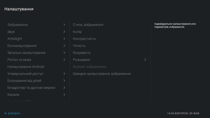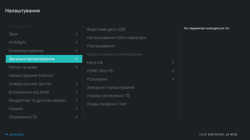 Настройки телевизора вполне логично разбиты по подразделам, всё понятно и наглядно, так что потеряться будет сложно: