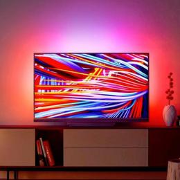 Флагманский телевизор Philips как-то уже слабо представляется без фоновой динамической подсветки Ambilight. В Philips 49PUS8503 она трёхсторонняя, полноцветная. Мы уже неоднократно о ней рассказывали в прошлых обзорах. Но если кто ещё не в курсе — это адаптивная динамическая фоновая подсветка, которая визуально расширяет границы экрана благодаря проекции на стену за телевизором. Работает в разных режимах и настраивается как угодно, начиная от адаптации под картинку на экране и заканчивая функцией "ночника" с мягкой подсветкой: