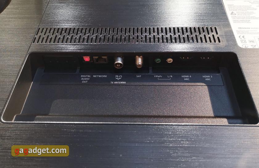 Разъёмы размещены с учётом возможности монтажа телевизора на стену: они направлены вниз или в сторону. Это исключает необходимость загибать кабели либо специально покупать варианты с Г-образным коннектором. В телевизоре есть 2хHDMI 2.0, 2хHDMI 1.4 (один боковой поддерживает MHL), LAN, компонентный (Y Pb Pr - L R), цифровой аудиовыход (оптический), 2xUSB (один из них версии 3.0), слот Common Interface (CI+), стандартный 3.5-мм разъём для наушников, сервисный разъём и два антенных входа для кабельного и спутникового. Телевизор поддерживает DVB-T/T2/T2-HD/C/S/S2. Из полезных мелочей стоит отметить поддержку EasyLink (HDMI CEC) — управление телевизором со стороннего устройства по HDMI и поддержка ARC (Audio Return Channel) на каждом HDMI.