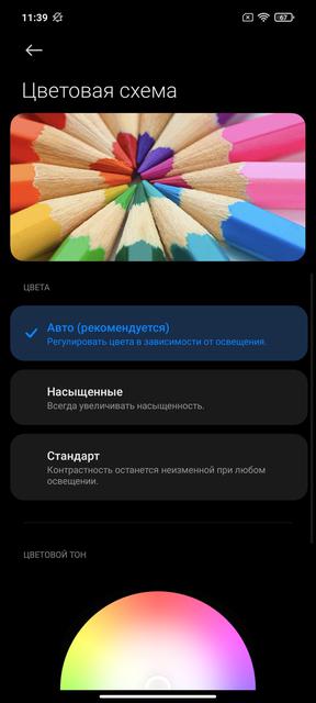 Картинка, как и полагается IPS-матрицам, более "спокойная" и естественная по сравнению с AMOLED. Углы обзора максимальные, а яркости достаточно для солнечного дня. В "Насыщенном" режиме максимальная яркость составила 435.56 кд/м2, яркость чёрного поля — 0.361 кд/м2, а статическая контрастность — 1207:1. При этом, экран и откалиброван очень неплохо: цветовой охват практически совпадает с sRGB, а отклонение к холодным оттенкам совсем небольшое.