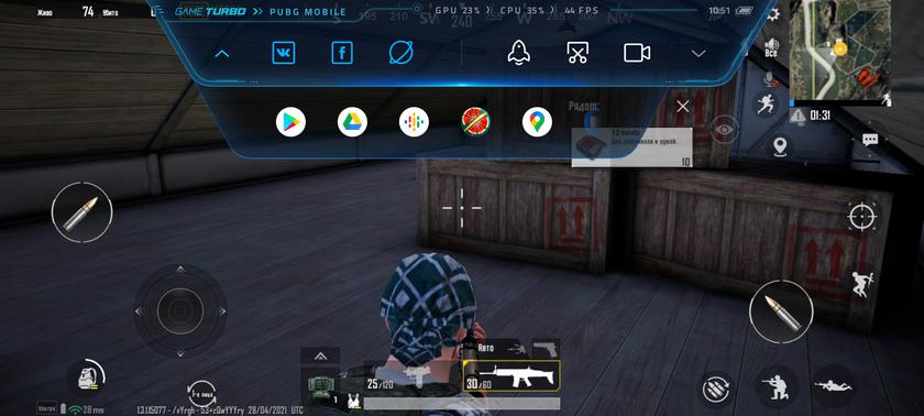 Интерфейс и приложения работают быстро и плавно. С играми тоже всё в полном порядке. Call of Duty Mobile на максимальных настройках показывает стабильные 60 кадров. PUBG — чуть более 40. Только в Genshin Impact кадровая частота колеблется в большом диапазоне. Показатели FPS можно посмотреть на скриншотах ниже, как и возможности фирменной игровой утилиты.