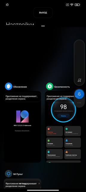 Диспетчер приложений сделан в виде вертикального списка с карточками и разделением экрана: