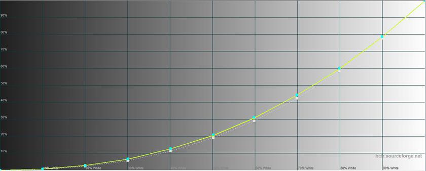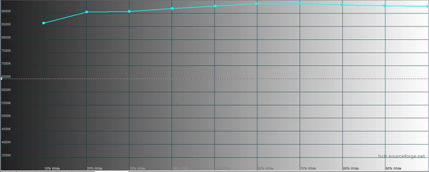 В режиме "Яркий" показатели практически полностью совпадают с "Великолепным", разница в пределах погрешности. Это касается как максимальной яркости (446.015 кд/м)², так и остальных показателей: