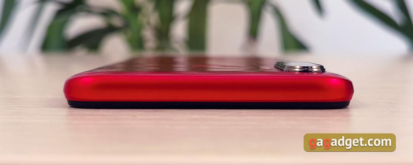 Смартфон явно ориентирован на молодёжную аудиторию, расцветки всего две и обе яркие. Существует голубой и красный варианты. Красный (субъективно) более интересный и не настолько заезженный. Задник немного переливается и под определёнными углами чуть уходит в розовый оттенок. Он имеет интересную текстуру, которая не только выглядит прикольно. Благодаря этой текстуре, смартфон не скользит в руке, не собирает отпечатки пальцев и, похоже, не особо подвержен механическим повреждениям.