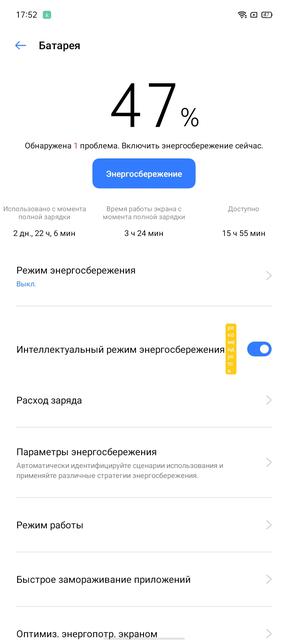 С автономностью у смартфона всё в полном порядке. Внутри — аккумулятор на 5000 мАч, который стабильно обеспечивает полтора-два дня работы на одном заряде (в зависимости от нагрузок, разумеется). При самом жёстком сценарии, если гонять тяжёлые игры часами на пролёт, аккумулятор realme C3 конечно реально "высадить" за день, но мне такой сценарий использования кажется очень маловероятным. Из позитивных бонусов — смартфон поддерживает обратную зарядку, хотя для этого потребуется OTG-кабель. Из неприятных моментов — быстрая зарядка не поддерживается, так что на полное восстановление заряда уходит более 2 часов.