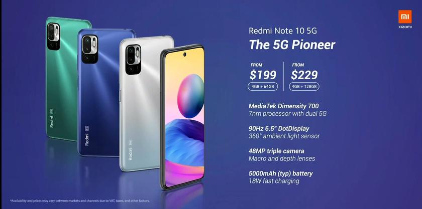 - Redmi Note 10 5G 4/128 ГБ — $229 (цена на старте продаж $199)