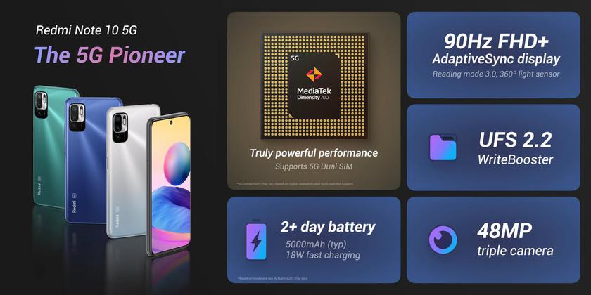 Redmi Note 10 5G: AMOLED-экран на 90 Гц, чип MediaTek Dimensity 700 и тройная камера на 48 МП