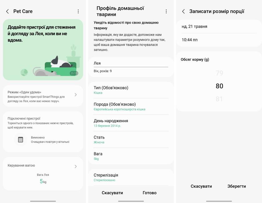 У многих есть домашние любимцы. По количеству кошек Украина вообще входит в топ-10 стран мира. Поэтому неудивительно, что SmartThings предлагает отдельные возможности ухода за пушистиками. Можно контролировать их вес и количество корма, а также интегрировать сценарии с, например, очистителями воздуха или автоматическими устройствами для выдачи дозированного корма. Например, можно наблюдать за котом или собакой с помощью камеры пылесоса Samsung Jet Bot AI+.