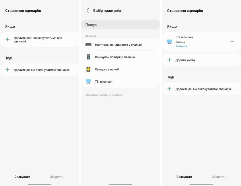 Для этого используется простой и понятный алгоритм Если-То, для активации которого пользователь должен выбрать устройство, активирующее автоматический сценарий. Выбрать состояние активации (телевизор в гостиной включен), а затем добавить все остальные устройства, которые должны изменить свое состояние работы на другое. Мы последовательно выбираем подключенные устройства и выбираем в настройках соответствующие изменения и сохраняем сценарий. При этом в любое время сценарий можно изменить. Например, вы купили еще и робот-пылесос и хотите, чтобы он останавливал свою работу во время просмотра телевизора. Достаточно подключить к приложению новый робот-уборщик и отредактировать сценарий, добавив в него новое действие с возвращением робота на зарядную станцию.