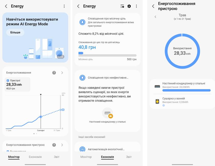 Умное потребление тоже становится частью нашей жизни и касается не только Греты Тунберг. Приложение SmartThings поможет отслеживать уровень потребления электроэнергии и избегать ее бесполезного использования. Например, пришлет сообщение, если вы не закроете дверь умного холодильника, или позволит определить, какие из умных устройств потребляют много энергии, когда вас нет дома. Посмотреть статистику за месяц и изменить режимы работы устройств можно в несколько кликов. Можно даже установить реальную стоимость киловатта в вашем доме, установить цели расходов на месяц и отслеживать прогресс.
