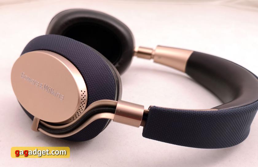 Bowers & Wilkins PX — пожалуй, самые интересные и необычные с точки зрения дизайна и внешнего вида в нашей сегодняшней подборке. Конструкция сочетает массивные металлические детали: каркас оголовья полностью сделан из металла, внешние части чашек тоже металлические, на них — логотипы Bowers & Wilkins. Вокруг металлических вставок на чашках и на верхней части оголовья — нейлон, который (теоретически) должен быть значительно долговечнее кожзаменителя или пластика. Как утверждается на официальном сайте, амбушюры и внутренняя часть оголовья сделаны из кожи. Ещё одна конструктивная и интересная фишка — кабель, который соединяет чашки наушников. Он в тканевой оплётке и расположен в открытом желобке на креплениях чашек. Размер оголовья регулируется плавно. Единственный не слишком удобный момент конструкции: чашки поворачиваются, но наушники сложить для транспортировки нельзя. Выпускаются Bowers & Wilkins PX в двух вариантах: сине-золотистый и серо-чёрный: