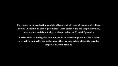 Игры из этого сборника содержат оскорбительные изображения людей и культур, основанные на расовых и этнических предрассудках. Эти стереотипы глубоко вредны, непростительны и не согласуются с ценностями Crystal Dynamics.