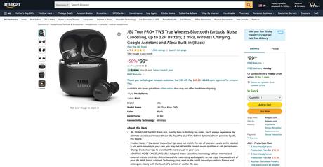 Скидка $100: JBL Tour PRO+ с адаптивным ANC можно купить на Amazon за $99