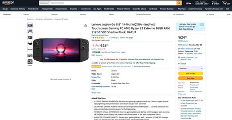 Lenovo Legion Go на Amazon: портативная игровая консоль с экраном на 144 Гц и чипом AMD Ryzen Z1 Extreme со скидкой $75
