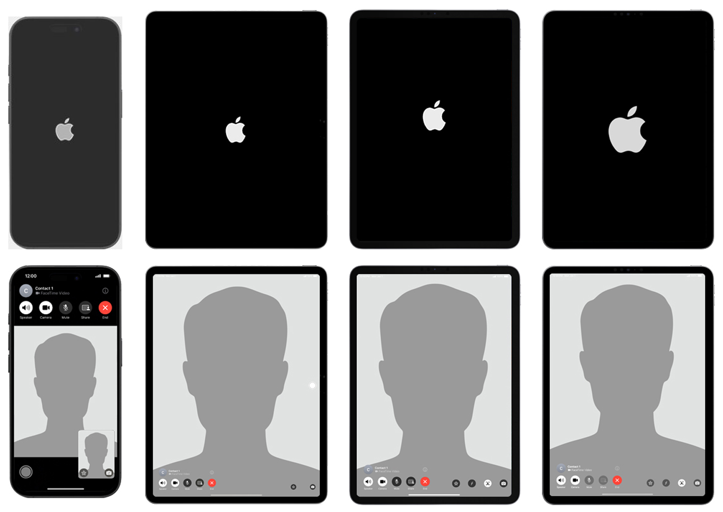Схемы передних панелей новых iPad и нового iPhone SE (iPhone 16E), который может получить вырез Dynamic Island. Иллюстрация: Evan Blass