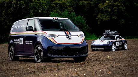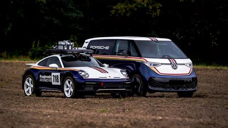 Porsche сделала из VW ID.Buzz автомобиль поддержки для 911 Dakar с ливреей в стиле Rothmans