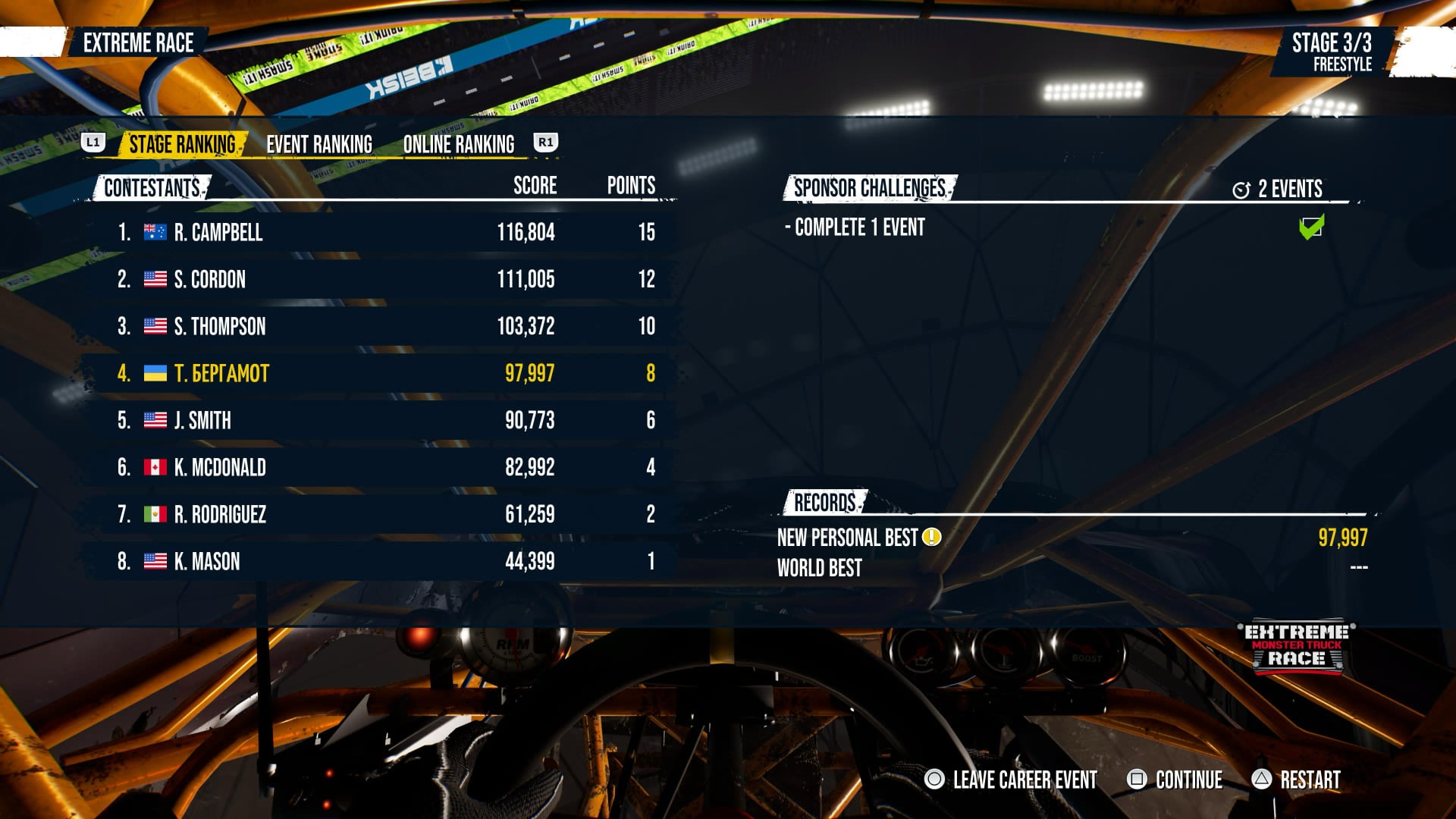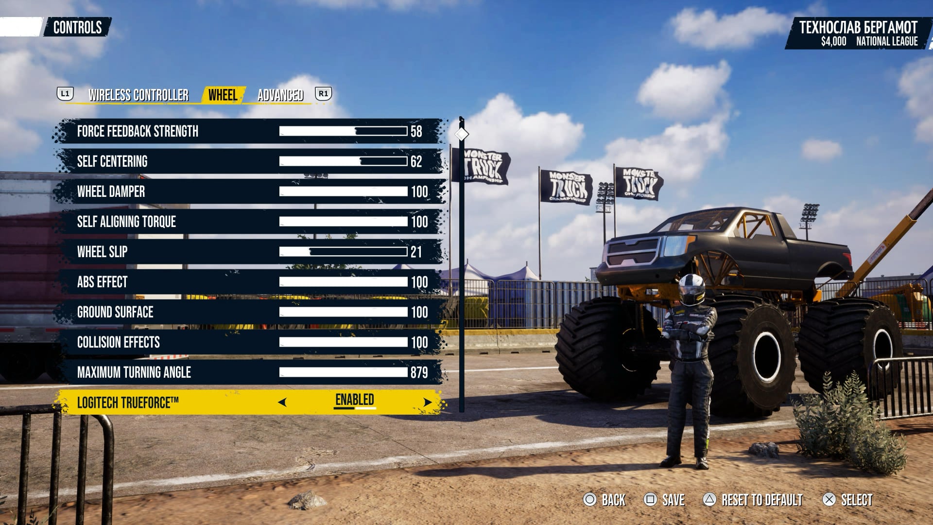 Отдельные впечатления от пользования рулем можно получить с ребенком. На самом деле, откровенно детских игр (все эти машинки LEGO и других детских франшиз вроде Paw Patrol), совместимых с Logitech G923, нет. Но желание попробовать у дочки было. Хотя, конечно, до педалей с ее небольшим ростом дотянуться трудно. Поэтому мы начали с того, что педалями управлял я, а она крутила только руль, сидя у меня на коленях. Еще был вариант, когда каждый сидел в своем кресле, но я так же давил педали, а дочь пыталась крутить руль. Было весело. Но на трассе ей все быстро надоело. Именно тогда мы нашли Monster Truck Championship, где скорость не важна, а за опрокидывание машины на монструозных колесах или разбивание других автомобилей ты получаешь не штрафы, а наоборот, - призовые баллы.