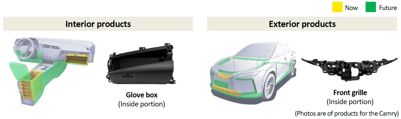 Toyoda Gosei утверждает, что это первый в мире случай применения переработанного пластика с таким высоким содержанием ELV-материалов в ударостойких автомобильных компонентах. Производитель подчёркивает, что технология позволяет осуществлять горизонтальную переработку: полученное сырьё применяется в тех же типах деталей, из которых оно было извлечено. Такая особенность способствует снижению выбросов CO₂ и формированию замкнутой производственной цепочки.