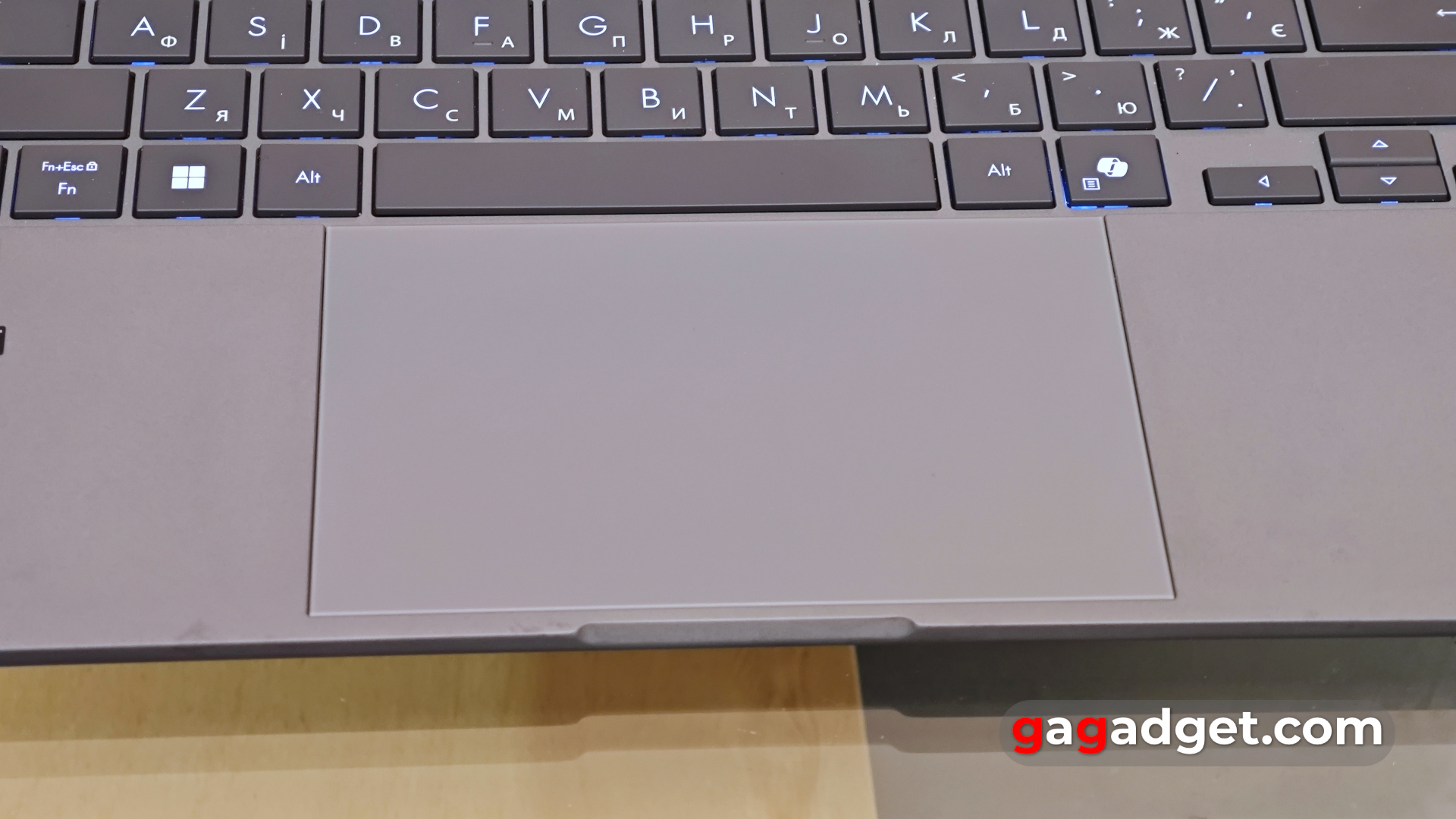Тачпад ASUS Zenbook A14 больших размеров, он занимает почти весь промежуток между клавиатурным блоком и краем топкейса. Он стеклянный, с хорошим покрытием и отличной чувствительностью. Его достаточно и для всех стандартных задач, и для базового редактирования фотографий.
