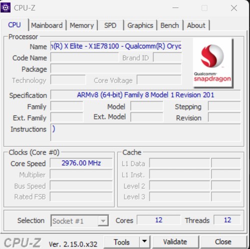 | Процессор | Qualcomm Snapdragon X Elite X1E 78 100, 3.4 ГГц (кэш 42 МБ, до 3.4 ГГц, 12 ядер, 12 потоков); Qualcomm AI Engine до 75 TOP |