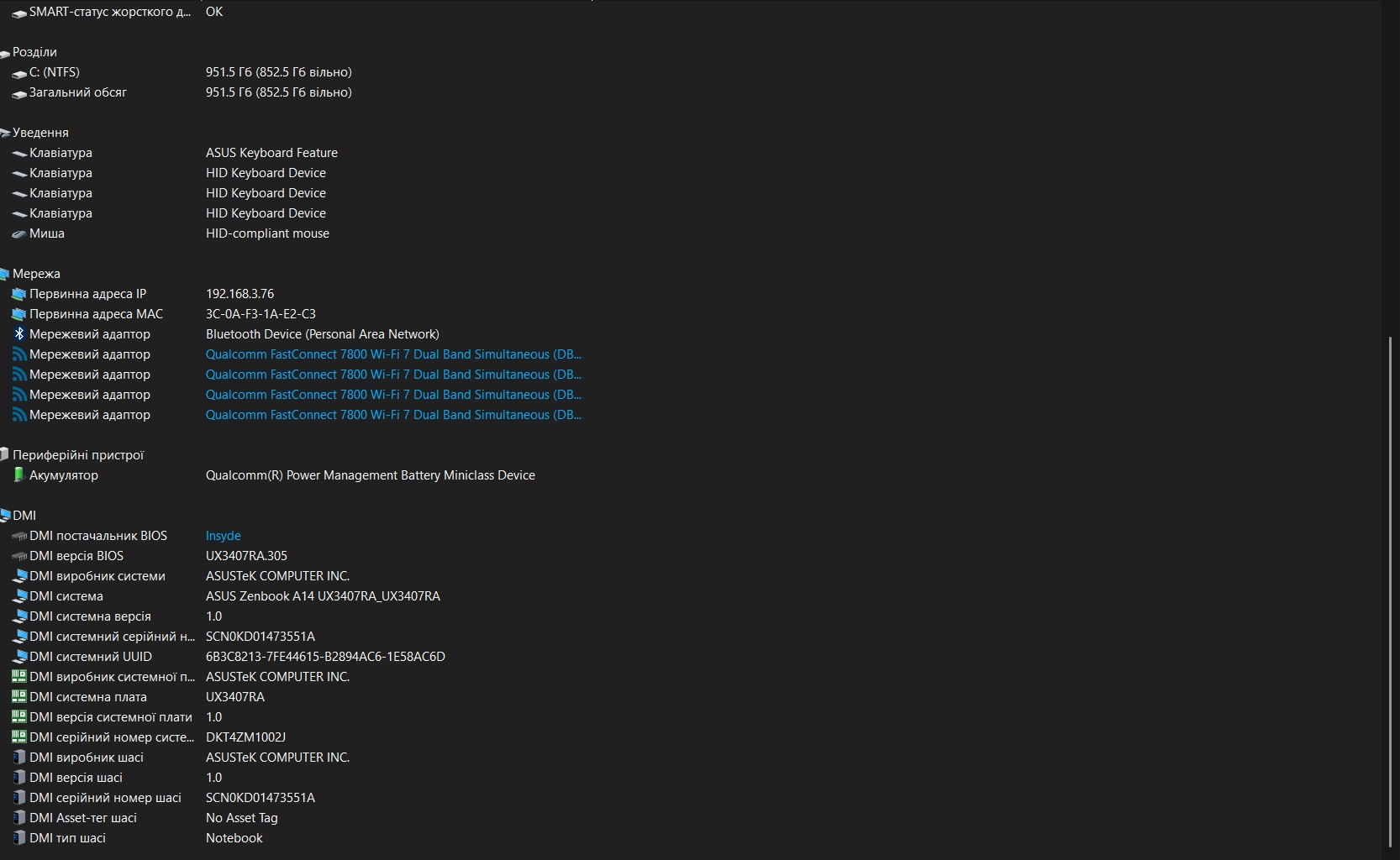 | Коммуникации | Wi-Fi 7 (802.11a/b/g/n/ac/ax/be), Bluetooth 5.4 |