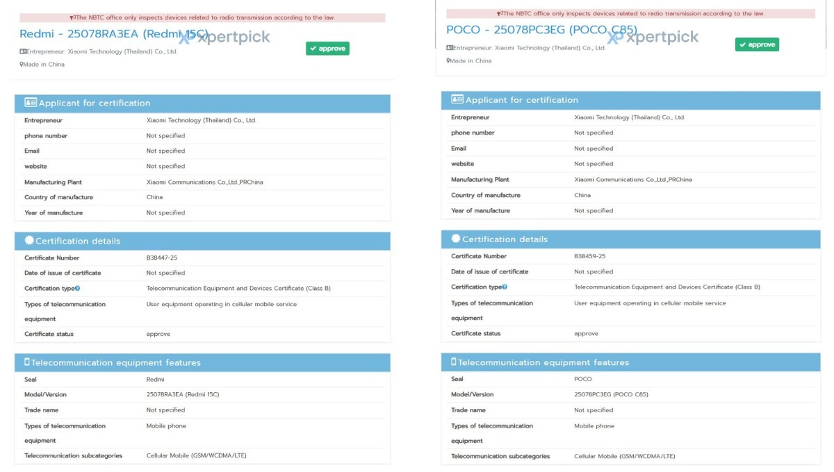 Вместе с Redmi 15C сертификацию прошел и Poco C85 с почти идентичным номером модели - 25078PC3EG, что указывает на возможный одновременный запуск обоих устройств.