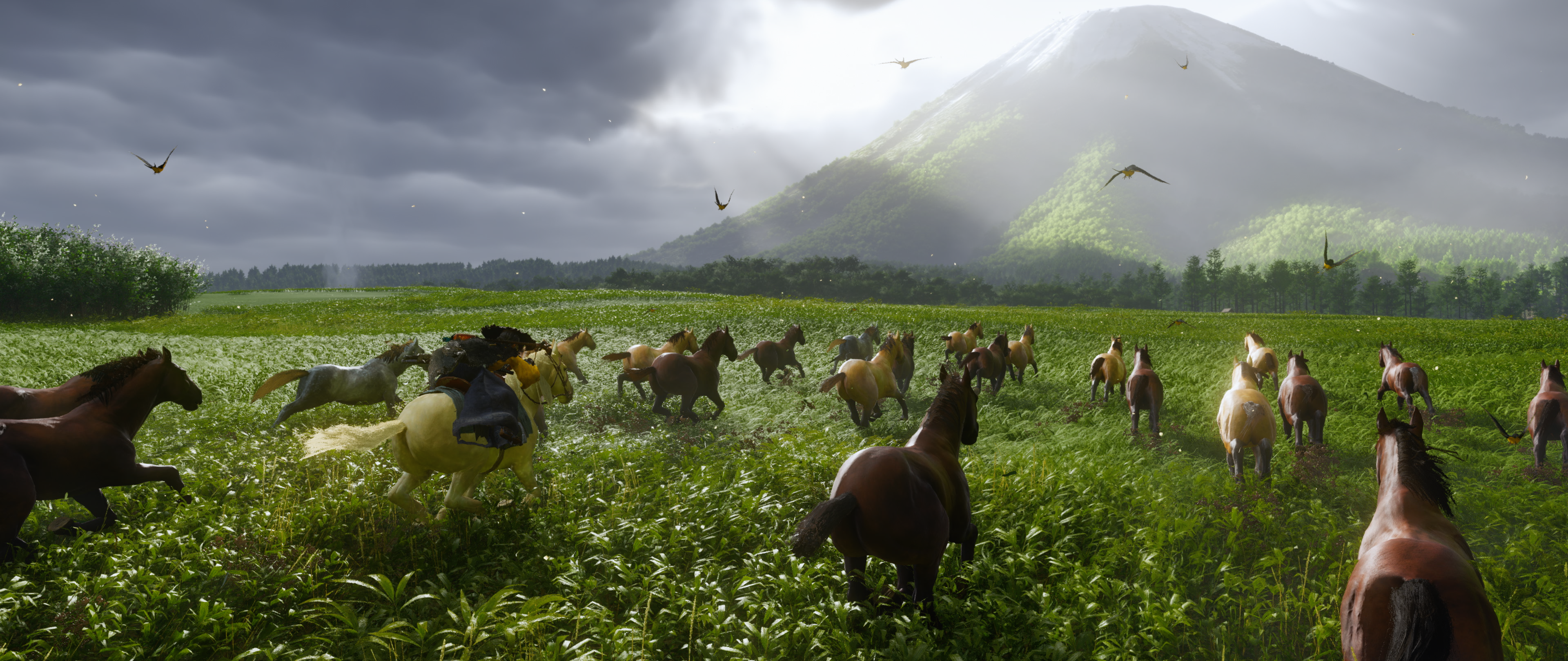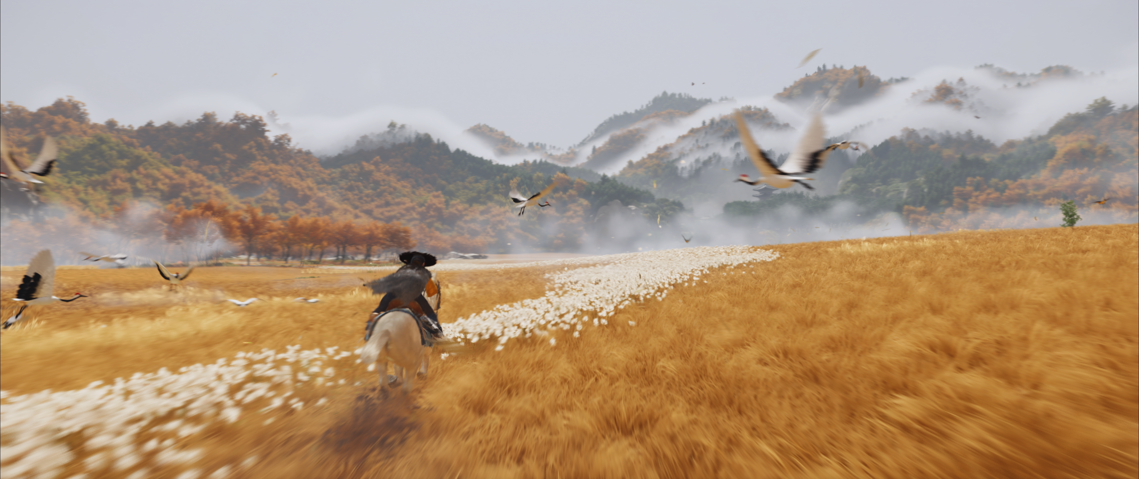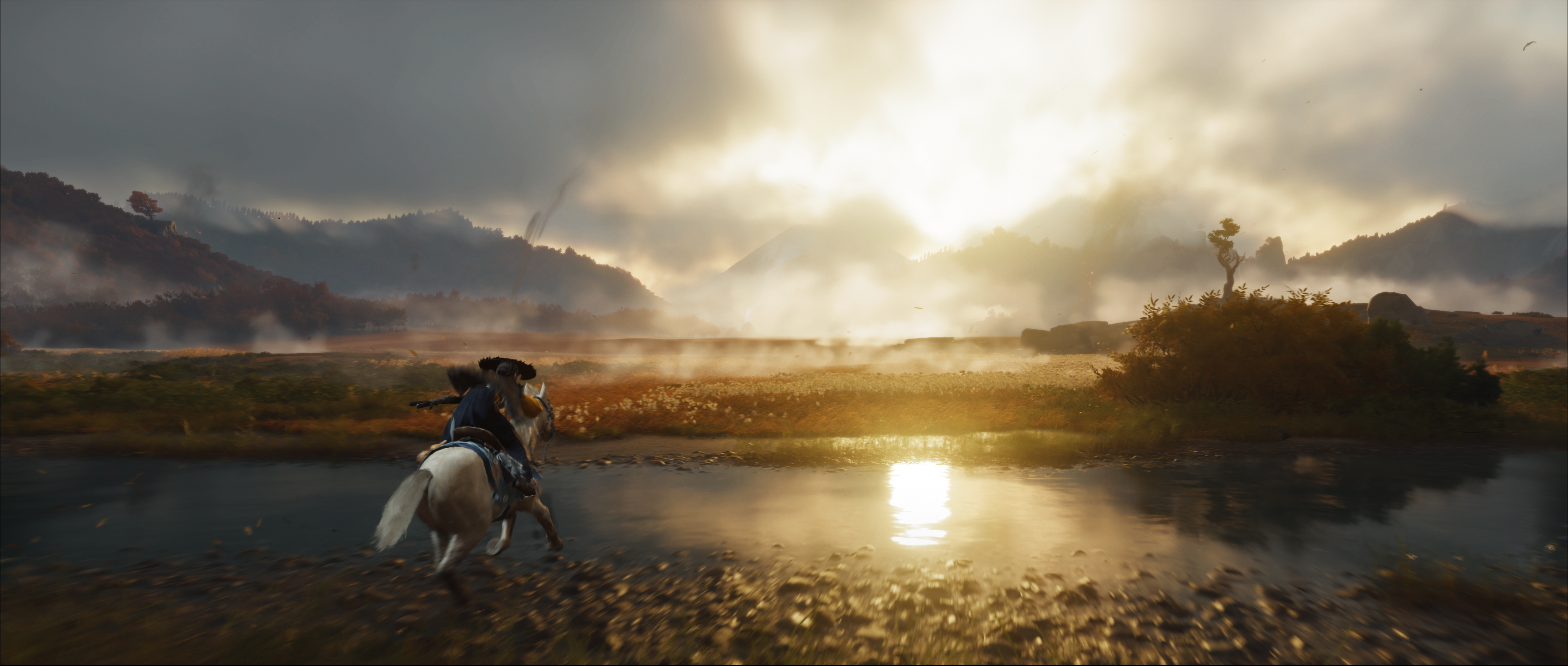 Ghost of Tsushima в своё время полюбили больше всего едва ли не за визуал. И Yōtei удачно наследует этот момент. Леса, озера, поля из цветов, пляжи, горы и японская архитектура создают разнообразные пейзажи и дарят игровой индустрии одну из самых красивых игр этого года. Пройти мимо поля на котором высажены красные цветы или проезжая верхом на лошади мимо леса, где растут золотые деревья и не сказать "вау" просто невозможно. А забравшись на какую-то высокую точку ты просто останавливаешься, задерживаешь дыхание и наслаждаешься моментом.