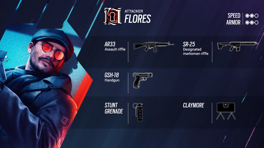 Flores будет доступен сразу после покупки премиального боевого пропуска Crimson Heist. Спустя две недели игроки смогут купить бойца за очки славы или кредиты R6.