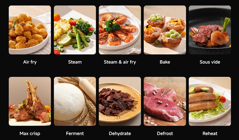 Внутренняя поверхность чаши покрыта двухслойным антипригарным составом, который легко моется и безопасен для здоровья. Диапазон температур от 40°C до 230°C делает устройство универсальным. Новинка получила 10 режимов работы, включая паровую обработку, сушку, ферментацию, разморозку и разогрев.